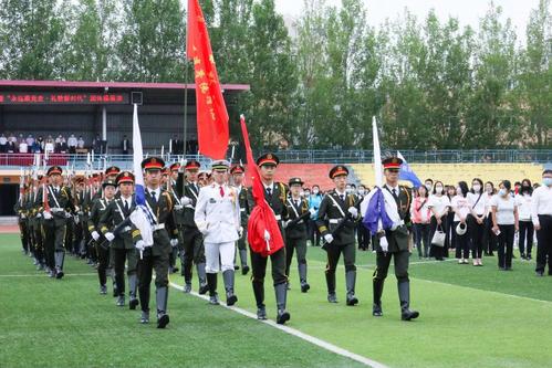 伴随着激昂的入场音乐,学校国旗护卫队方阵从主席台下整装列发,他们的步伐稳重有力,队伍英姿飒爽,动作整齐划一,护送着五星红旗、哈工大校旗和华德学院校旗至升旗台。在庄严的国歌声中,三面旗帜缓缓升起,现场所有师生脱帽行注目礼并高唱国歌。